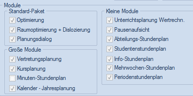 Das Programm Untis enthält alle Funktionen des Programmpakets. Je nach Lizenz werden die entsprechenden Untis-Module freigeschaltet. Für die österreichischen Bundesschulen können momentan folgende Untis-Module aktiviert werden: