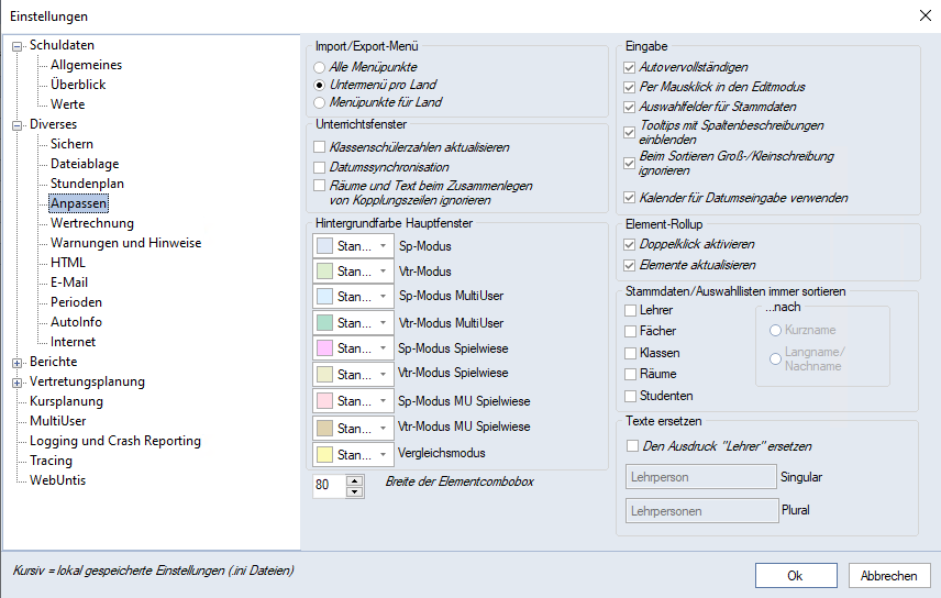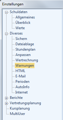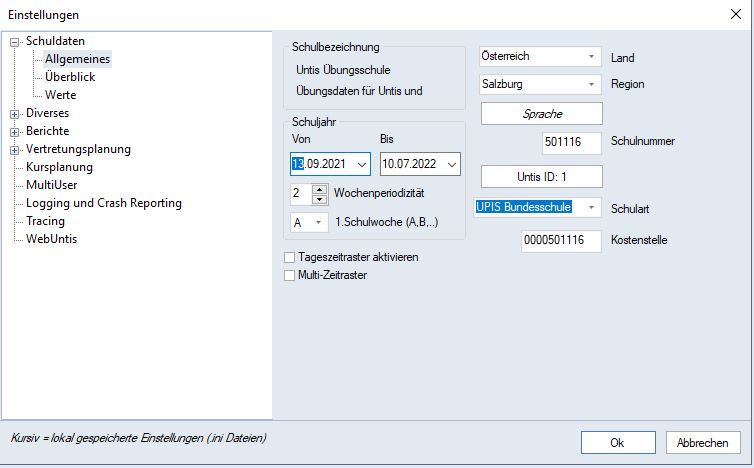 Menüpunkt <Start | Einstellungen | Schuldaten | Allgemeines>