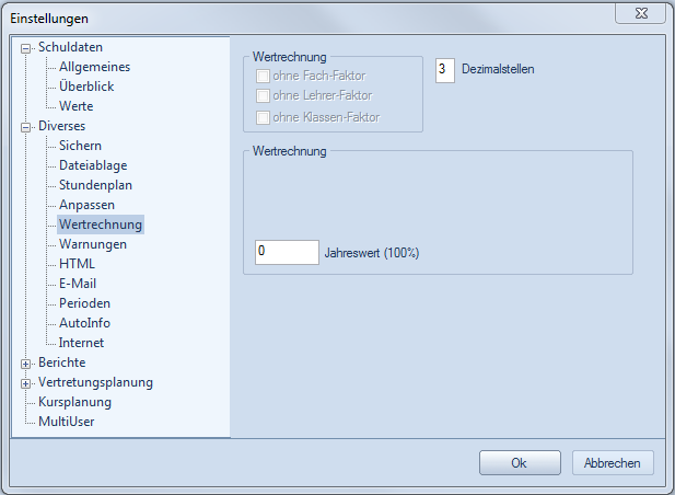 - Damit werden sowohl die unterstützenden Funktionen für die Erstellung und Verwaltung einer Lehrfächerverteilung aktiviert, als auch eine Wertrechnung eingeschaltet. Die für Österreich nötige Wertrechnung wird durch die Ländereingabe „Österreich“ bei den Schuldaten aktiviert.