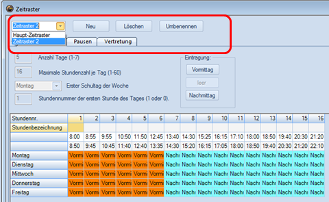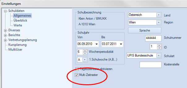 - Multizeitraster: Zu aktivieren, wenn für verschiedene Klassen unterschiedliche Zeitraster benötigt werden.