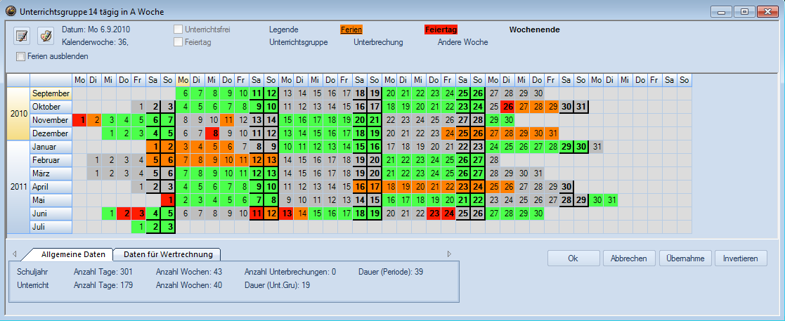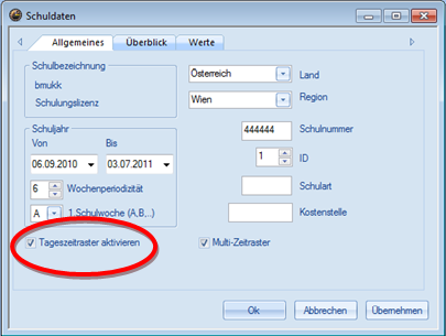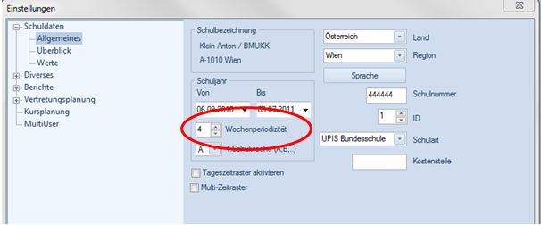 - Schuldaten: Angabe der Wochenperiodizität (1-16)