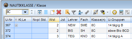 - Sie können sich nun bestimmte Unterrichtszeilen, die (durch Gruppen beschränkt) mehrfach auftreten, kopieren (markieren, in Zwischenablage kopieren, Cursor an den richtigen Platz und einfügen) entsprechend ändern und die unterschiedlichen Gruppen nun in den Unterrichtszeilen dazufügen.