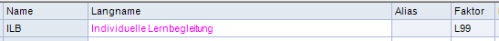 Das Fach ILB (Individuelle Lernbegleitung) ist als Gegenstand unter Stammdaten – Fächer mit der LVG L99 anzulegen.