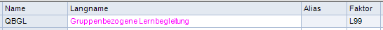 Das Fach QBGL (Gruppenbezogene Lernbegleitung) ist als Gegenstand unter Stammdaten – Fächer mit der LVG L99 anzulgen.
