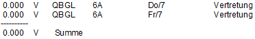 Am Monatsabrechnungsblatt erscheinen die ILB-Stunden in der Wochenübersicht und in der Zusammenfassung am Ende des Blattes. Die QBGL-Stunden werden zwar in der Wochenübersicht aufgelistet, haben für die Abrechnung aber keine Relevanz und erscheinen somit auch nicht in der Zusammenfassung.