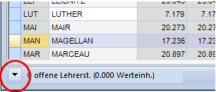 Die Dateneingabe kann sowohl über die Formularansicht (unterer Teil der Eingabeansicht, über Pfeil zu öffnen), als auch über die Rasteransicht erfolgen. Bei größerer Sicherheit im Umgang mit Untis wird man sich eine Reihe von Rasteransichten definieren.
