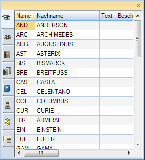 Die erste Spalte aller Stammdatenfenster ist für Umreihungen der Stammdaten, zum Erkennen der aktiven Zeile (Pfeil) und zum Erkennen der neuen Eingabezeile (Stern).