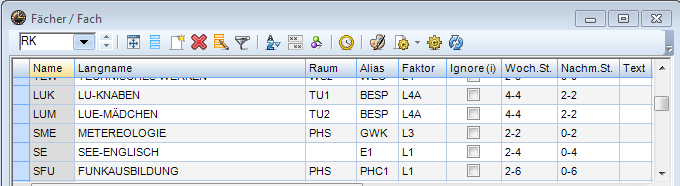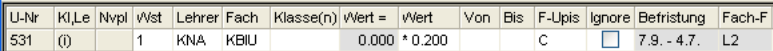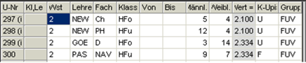 Bei den Ansichten für Stammdaten und Unterricht kann nur die Rasteransicht der Fenster verändert werden, d.h. die Formularansicht ist vom Anwender nicht veränderbar.