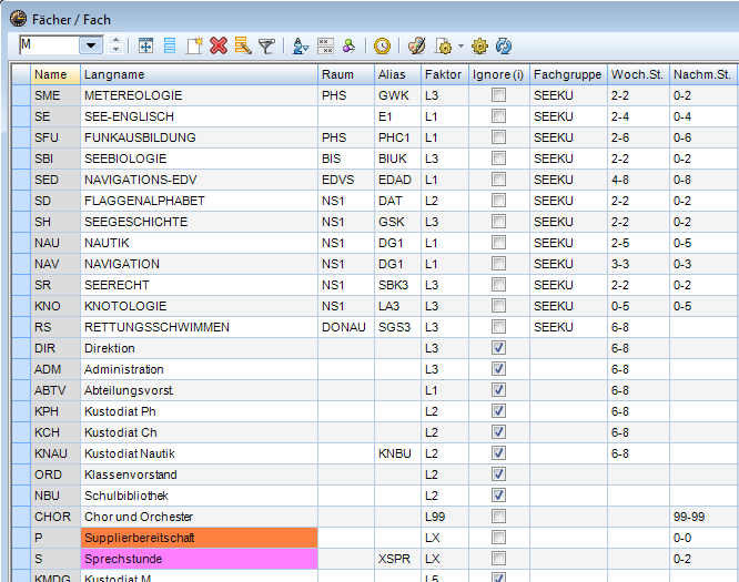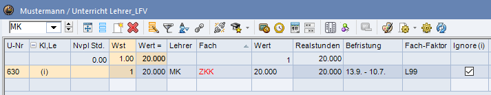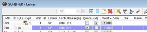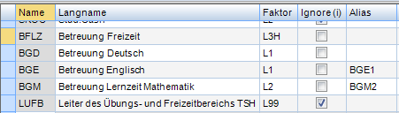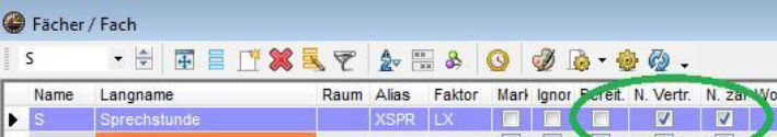 - Kennzeichnung „ignore“, wenn Fach als zusätzliche Tätigkeit fungiert