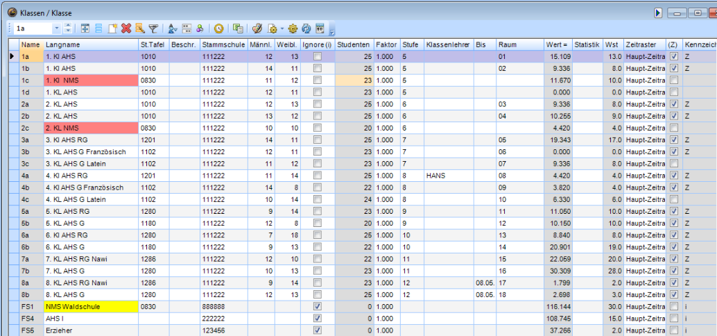 Stammdaten Klassen
