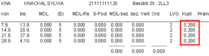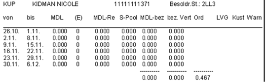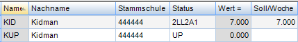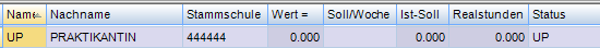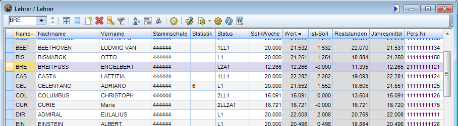 Name, Vorname, Langname, (eventuell: Text,) Status, Personalnummer, Stammschule, Werteinheiten, Soll/Woche, Ist-Soll