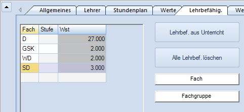 - Angaben bei Stammdaten Lehrern: Sperrvermerk, Anzahl der maximalen Bereitschaften