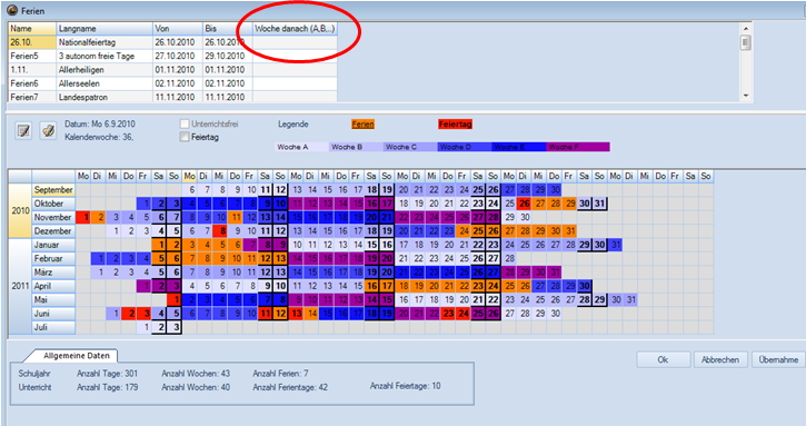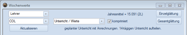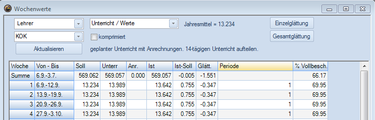 Trotz wochenweiser Berechnung der WE, Mittelwerte und Glättung muss das Schuljahr so eingegeben werden, wie es durch das Schulzeitgesetz festgelegt wird (Montag in der ersten Schulwoche bis Sonntag in der letzten Schulwoche). - Wochenperiodizität