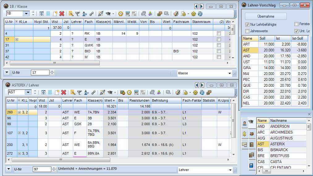 - Zuordnung von Klassen, Räumen und Lehrern