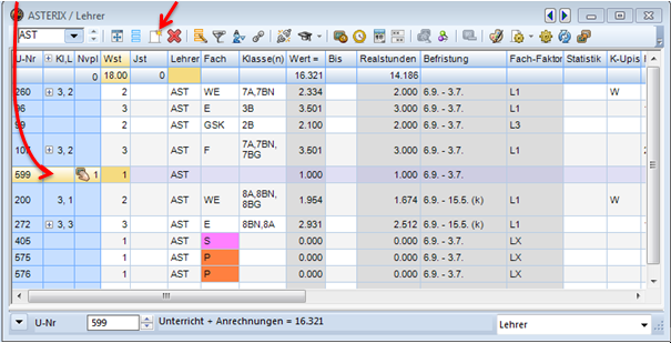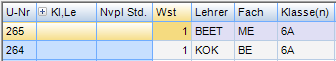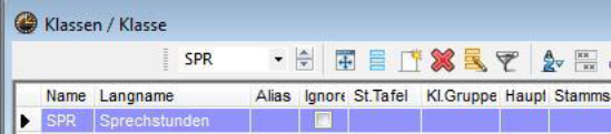 Man stellt den Cursor in eine Zeile der gewünschten Art (Klasse, Lehrer, Fach). Durch Anklicken des Icons „Neu“