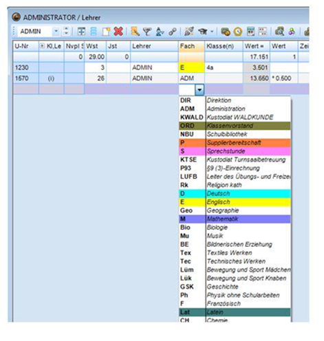 Bei Stammdaten und (teilweise) im Unterricht stehen Drop-down-Listen zur Verfügung.