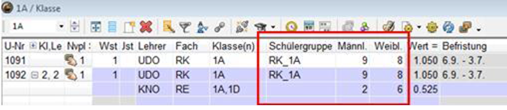 - Schülerzahlen bei Klassengruppen bzw. Schülergruppen