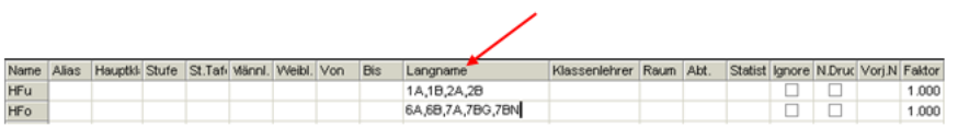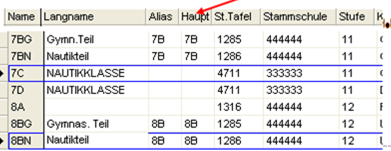 Name, Alias-Name, Stundentafel, (eventuell Abteilung) Schulstufe, von, bis, Vorjahrsname.