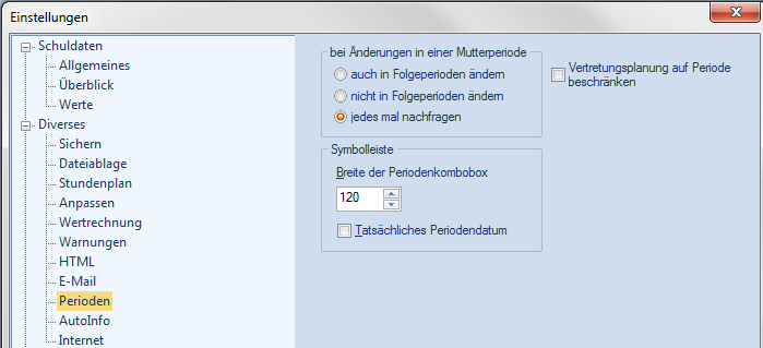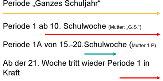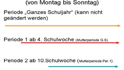 Perioden sollten (außer bei Gültigkeit für einen kürzeren Zeitraum) immer von einem Beginndatum bis zum Schuljahresende dauern.