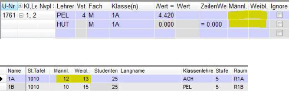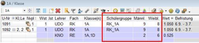 - Teilungsnummer (1-9): Unterricht wird nur 1x zur Klassensumme gezählt