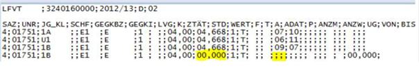 Eine <Dateneingabe | Werkzeuge | Formate | Stammdatenformate > (z.B. Kla-LFV), die zur Planung der Lehrfächerverteilung geeignet ist, wird keine Informationen für den Stundenplan enthalten, sondern es genügen z.B. die Datenfelder des nachfolgenden Beispiels.