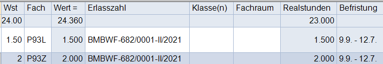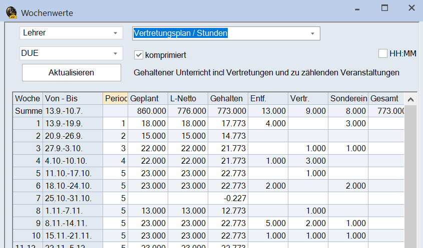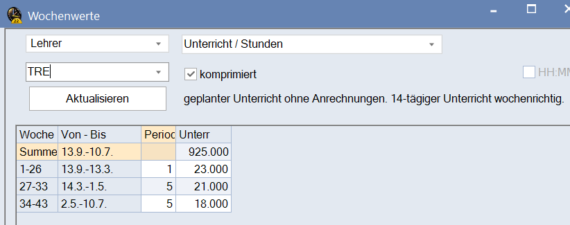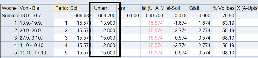 Hier wird, analog zu den Werten, die Stundenzahl ausgegeben, die TRE unterrichten soll, unabhängig davon, ob sie auch gehalten werden.