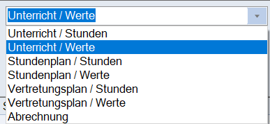 In Wochenwerte - >Lehrer sind in der Combobox folgende Einstellungen möglich: