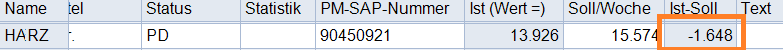 Bei Unterbeschäftigung ist der SOLL-Wert der Jahresmittelwert. Den Sollwert berechnet man bei Module → Wochenwerte.