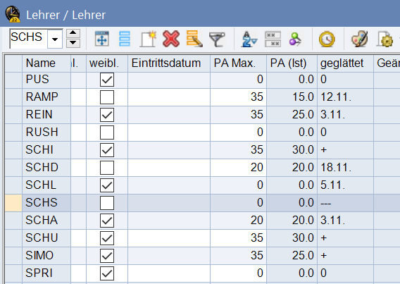 Bei jeder Lehrperson muss der SOLL-Wert bei Stammdaten Lehrer eingetragen werden.