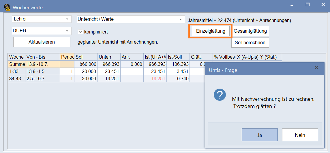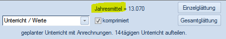 Zur Glättung herangezogen wird nur jeder Unterricht, der zum Zeitpunkt der Glättung eingetragen ist.