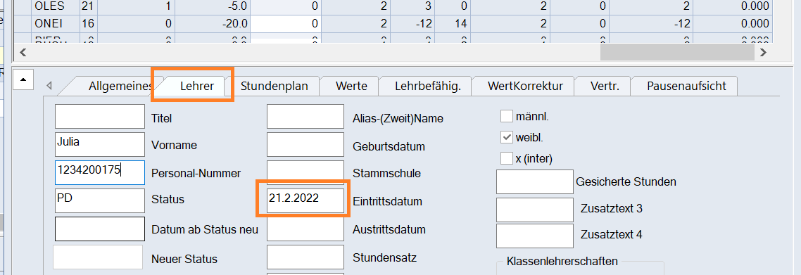 Eingaben in den Lehrer-Stammdaten und deren Auswirkungen