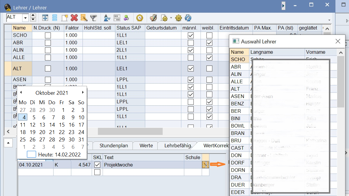Dabei wird der Sollwert auch bei Stammdaten Lehrer im dafür vorgesehenen Feld eingetragen.