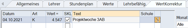 | 04 | Wertekorrekturen | • Leitung von einwöchigen Schulveranstaltungen • Auffüllen von teilbeschäftigten Lehrpersonen bei mindestens 4-tägigen Schulveranstaltungen • Sonstige manuelle Korrekturen |