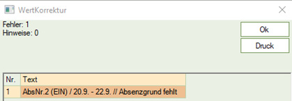 | 05 | Absenzen | Absenzen mit richtigem Absenzgrund eingegeben? |