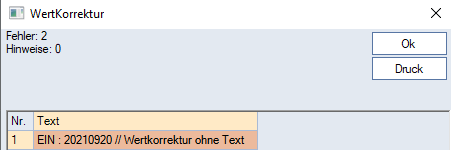 - Bei allen Wertkorrekturen muss in der Spalte „Text“ statt der Platzhalter ????? eine Eintragung vorgenommen werden. Ansonsten wird das MDL-File nicht erstellt.