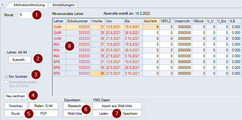 | 07 | Fremdlehrerabrechnung | • Export der FMD-Files nach WebUntis • Import der FMD-Files von Fremdschulen aus WebUntis |