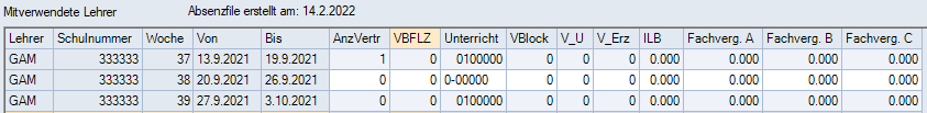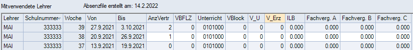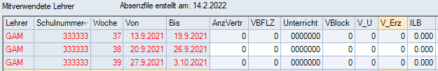 Im Absenzfile wird dann die Summe der entfallenen Unterrichtsstunden plus der Wert, der in der Spalte „Anrechnung“ steht, übertragen.