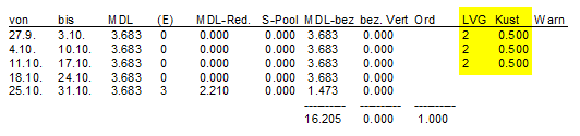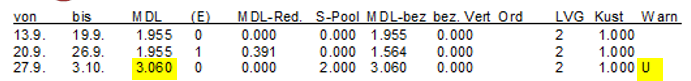 Im MDL-Vorschaublatt werden die Fächervergütungen in einem eigenen Block ausgewiesen, in der Übergabedatei für das BRZ (gpmdl.brz) werden die zu vergütenden Fächervergütungen in die Satzart 7 geschrieben:
