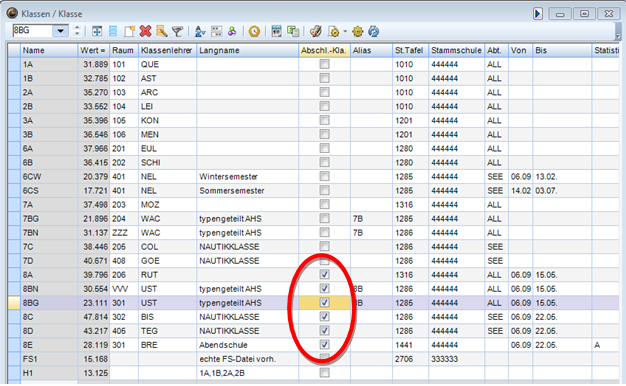 Achtung: Bei Abschlussklassen ist darauf zu achten das Häkchen bei „Abschl.-Kl.a.“ anzuhaken.
