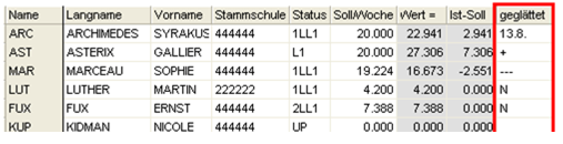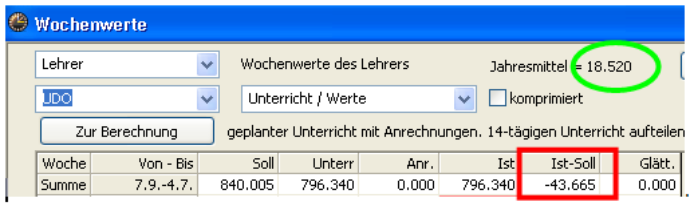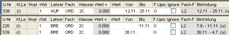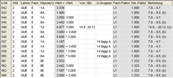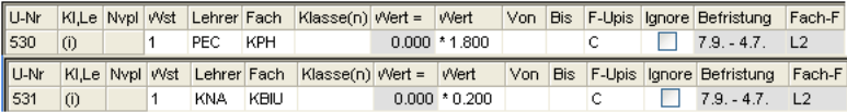 Vergessen Sie nicht, möglicherweise bereits eingegebene Sprechstunden und Supplierbereitschaften bei 2LL2 und 2LL3-LehrerInnen im Unterricht mit dem Wert 0.000 zu markieren, auch wenn Sie bei den Stammdaten Fächer den Wert bereits eingegeben haben, da eben bei diesem Lehrerstatus das Umrechnungsverhältnis 1:1 gilt.