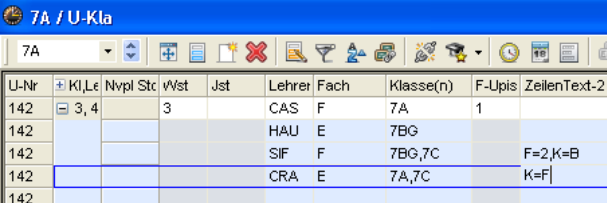 Einträge bei Klassengruppen 1 und 2 2 - diese Klassenteile müssen untereinander stehen!