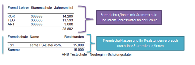• Fremdschulklassen (FSxx) werden in der Spalte Stammschule mit der Fremdschulnummer gekennzeichnet. Für jede Fremdschule ist eine eigene Fremdschulklasse anzulegen.