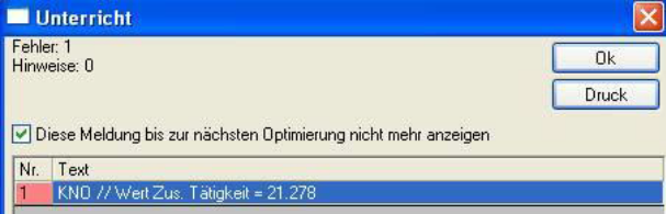 Sie erhalten eine (eher kurzgefasste) Fehlermeldungsliste auf dem Bildschirm, die Sie auch ausdrucken können. Gehen Sie nun wieder in gp-Untis zurück und nehmen Sie Ihre Korrekturen vor. Erstellen Sie den File neu, so bekommen Sie die Meldung: xxxx.untis bereits vorhanden. Überschreiben?