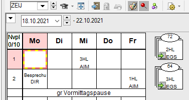 z.B. Vormerkungen (Blöcke) des Lehrers MAYH im Fach FVA_1 in der Klasse 3KKMW: