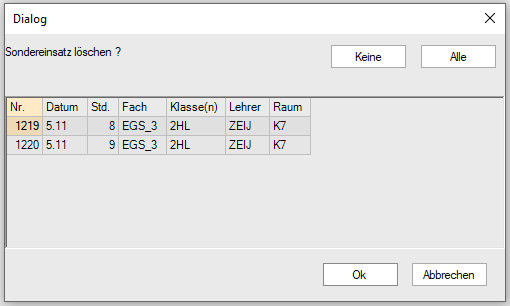 Auch über dieses Menü ist es nicht möglich den Sondereinsatz zu löschen um die Stunde supplieren zu lassen!