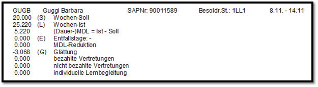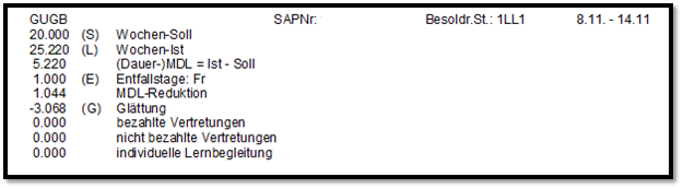 Werden einem Lehrer/einer Lehrerin alle Unterrichtsstunden eines Tages in die Vormerkungen gezogen, dann erscheint bei der Abrechnung für diese Woche ein Entfallstag. z.B.: GUGB Freitag 12.11.